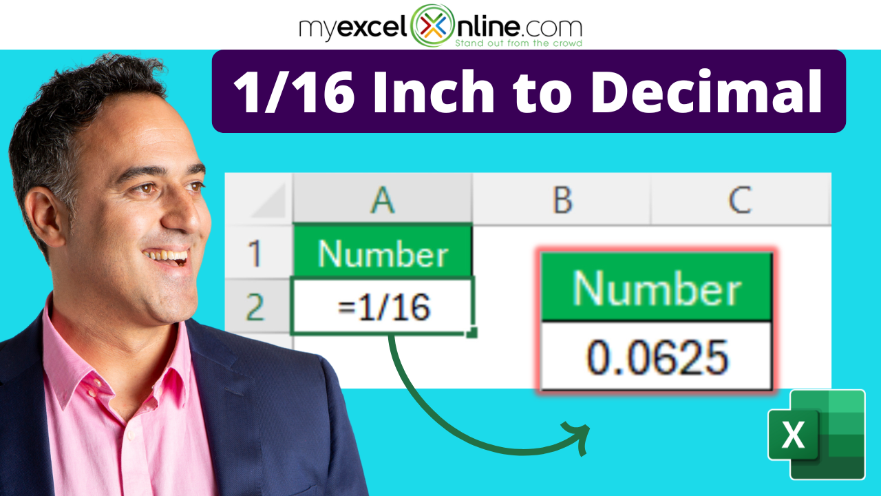 2. What’s the easiest way to convert 1/16 inch into a decimal in Excel?