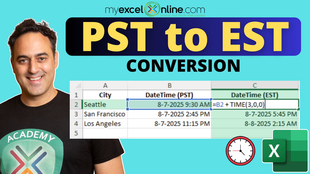 When working with colleagues or clients across different time zones, adjusting times correctly is essential. One common need is converting Pacific Standard Time (PST) to Eastern Standard Time (EST). Since EST is 3 hours ahead of PST, Excel can handle the conversion with a simple formula. This guide will walk you through how to do it step by step on converting pst time to est time, along with advanced options for bulk conversions and automation.