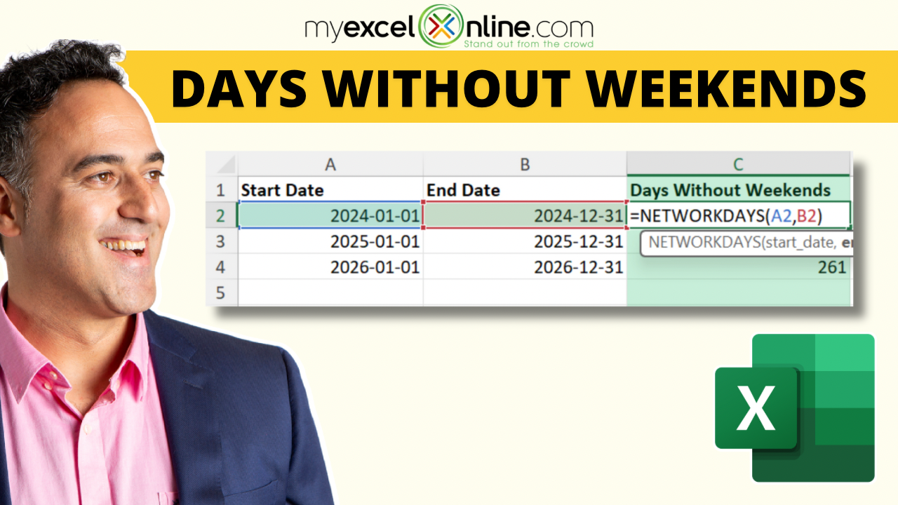 Use NETWORKDAYS.INTL: If your weekends are not Saturday-Sunday (e.g., Friday-Saturday), use NETWORKDAYS.INTL