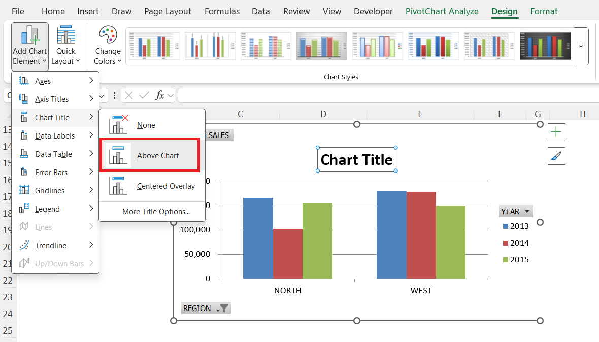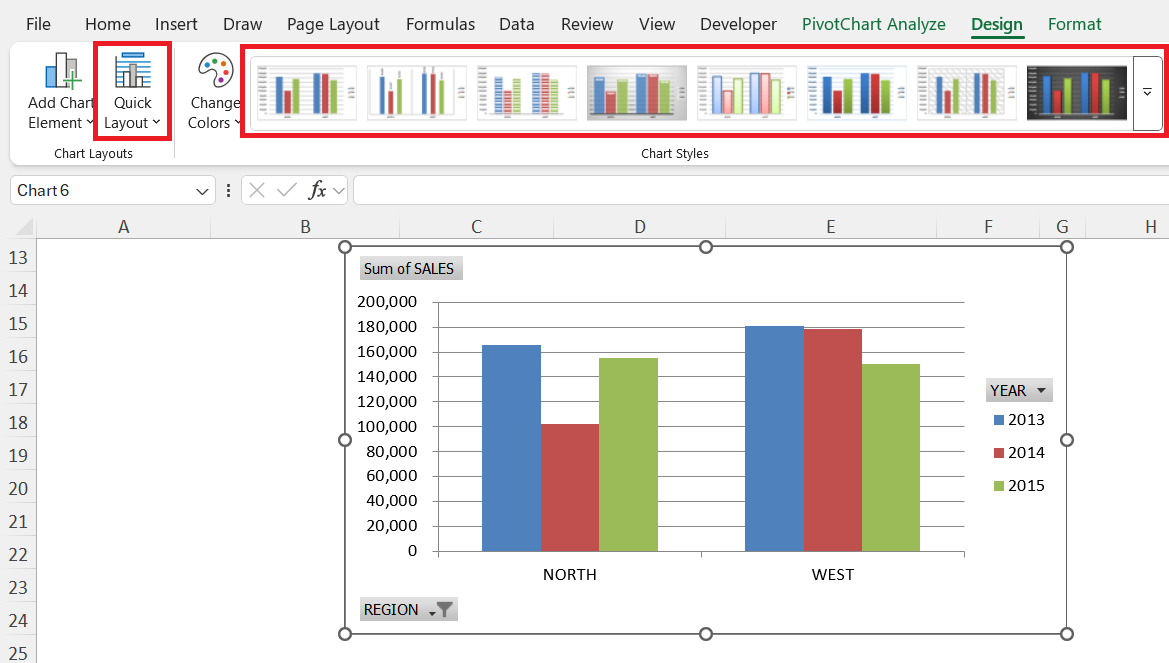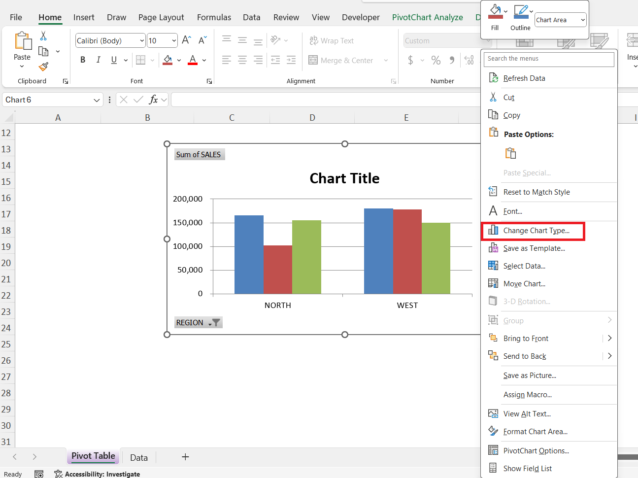 - If you filter the Pivot Table to show only a specific region, the Pivot Chart will instantly adjust to reflect that region’s data.