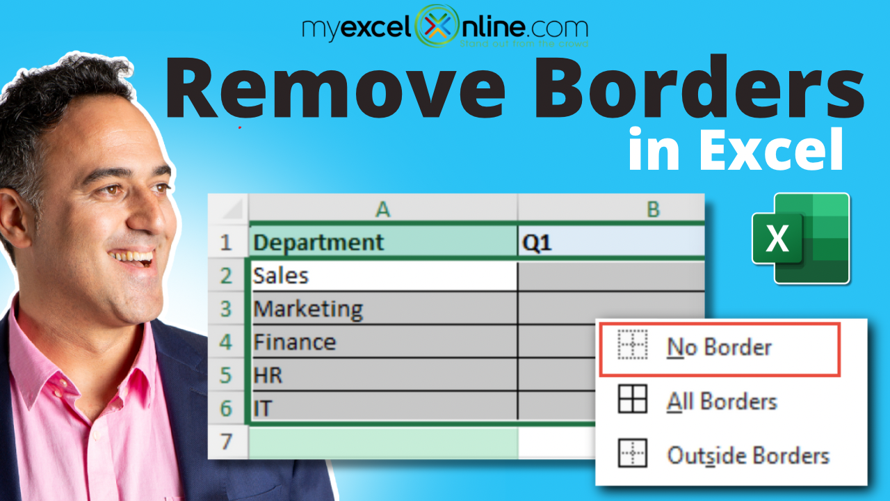 - You can remove borders using the Ribbon, Format Cells dialog, or keyboard shortcuts.
