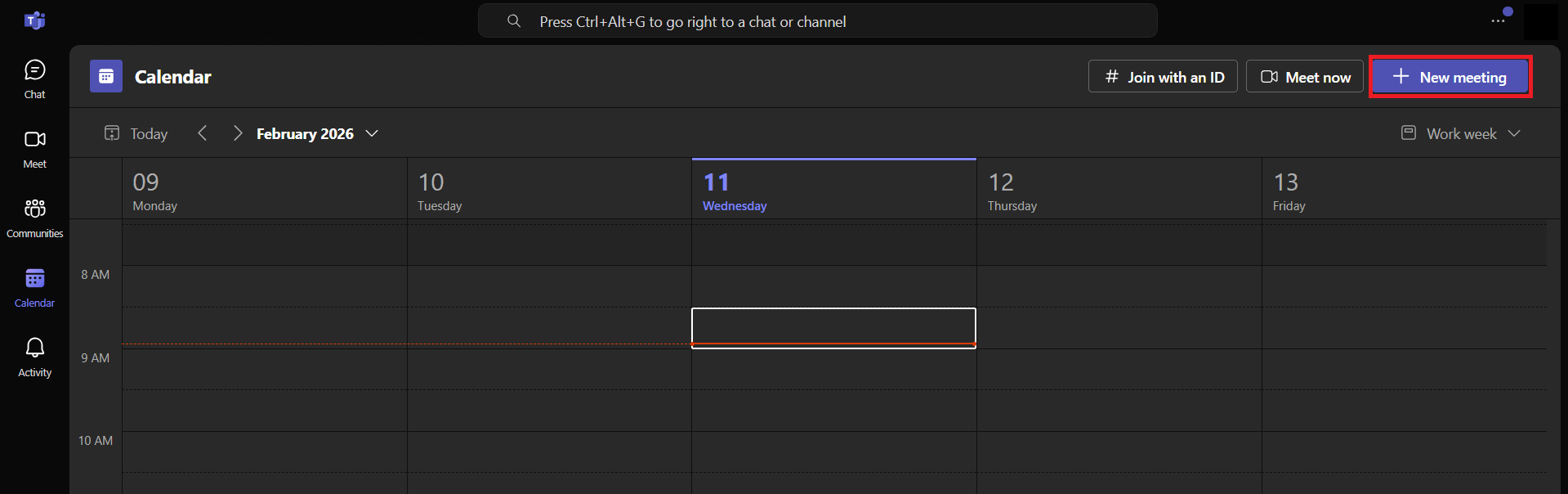 STEP 2: In the Calendar tab, click on New Meeting.