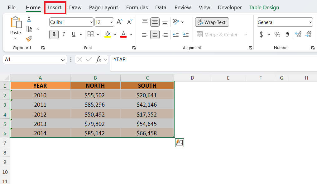 STEP 1: Select the entire dataset, including the column headers. Go to the Insert tab on the Ribbon.